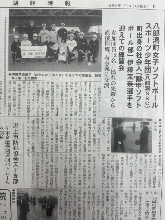 女子ソフトボールスポーツ少年団(八郎潟SBC)を訪れ、自分を育ててくれたチームに恩返しするべく、