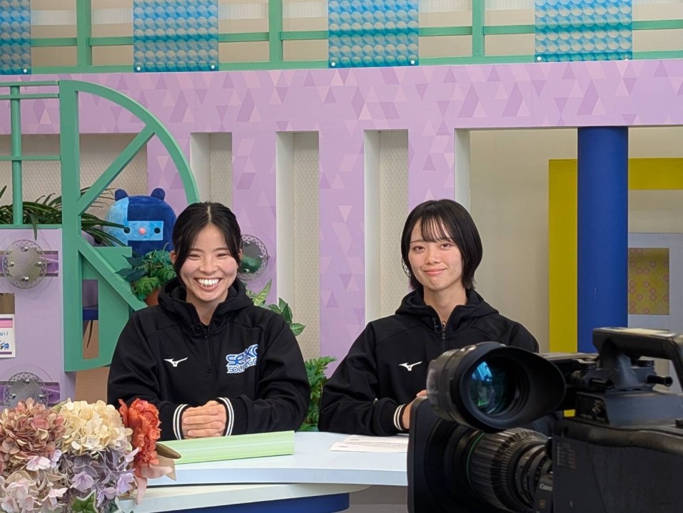 2026/02/12 お知らせ TOKAIケーブルテレビ『トコチャンニュース』生出演しました 2月6日(木) TOKAIケーブルテレビ『トコチャンニュース』に井上葉菜キャプテンと伊藤茉奈選手が生出演いたしました。 2026年シーズンよりチーム名を「靜甲ソルフェジオ」へ変更したことを受け、番組内ではチームの紹介、 新チーム名に込めた想いやその由来、新ユニフォームの紹介をさせていただきました。 番組:TOKAIケーブルテレビ トコチャンニュース内「トコナビ」 提供:株式会社TOKAIケーブルネットワーク