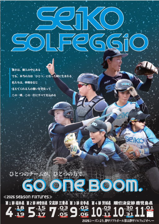 2026/04/16 お知らせ 「第59回日本女子ソフトボールリーグ」 開催日程について いよいよ、今週末4月18日(土)より第59回日本女子ソフトボールリーグが福井県きらめきスタジアムにて開幕します。 日本ソフトボールリーグ、まだどこのチームも成し遂げたことのない、『リーグ2連覇』を目指し一戦一戦、チーム一丸となって戦います。 残念ながら静岡でのリーグ開催はありませんが、試合の様子は「YouTube」または「ソルフェジオ公式アプリ」からご覧いただけます。 ぜひ、たくさんのご声援をよろしくお願いいたします。 ※詳細情報はこちら(ソルフェジオ公式アプリ)をご覧ください (Google Play) https://play.google.com/store/apps/details?id=me.ookami.white.seiko_solfeggio (App Store) https://apps.apple.com/jp/app/
