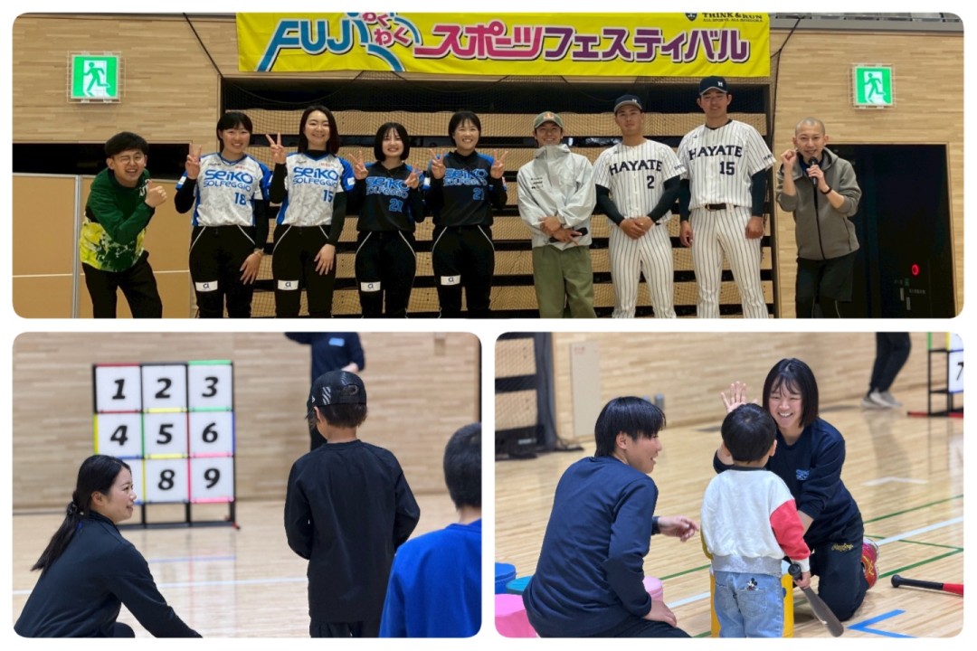 2026/04/14 お知らせ 「FUJIわくわくスポーツフェスティバル」に参加しました 4月5日(日) 北里アリーナ富士(富士市総合体育館)にて開催された「FUJIわくわくスポーツフェスティバル」に参加いたしました。 当日は、同イベントに参加していたShigekixさん、ハヤテベンチャーズ静岡の選手の皆さんとともに、 会場全体でスポーツの魅力を発信しました。 当チームはソフトボールの体験ブースとしてだるま落としを活用したバッティング体験や、 ストラックアウトによる投球体験を行い、ソフトボールをより身近なものとして親しんでいただきました。 延べ300名の方にご参加いただき、多くの方々にソフトボールに触れていただく良い機会となりました。 主催:株式会社SBSプロモーション THINK&RUNプロジェクト