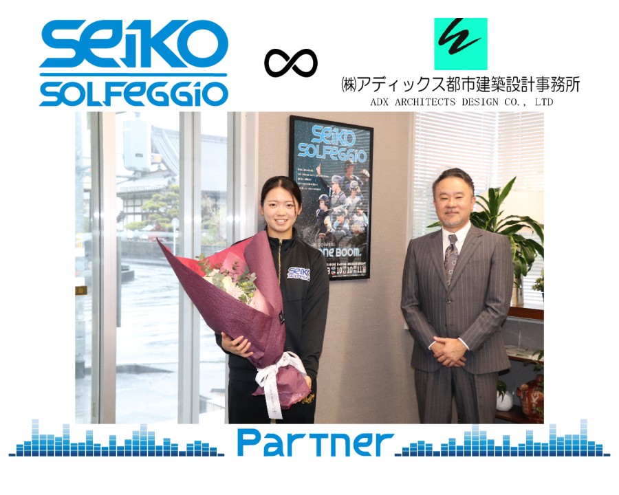 2026/04/23 お知らせ 株式会社アディックス都市建築設計事務所様とパートナー契約を締結いたしました このたび靜甲ソルフェジオは、「株式会社アディックス都市建築設計事務所」様とパートナー契約を締結いたしました。 靜甲ソルフェジオの活動にご賛同いただき、パートナーとしてご支援いただけますこと、心より感謝申し上げます。 【ともに響き、ともに戦う。】 パートナーの皆さまと“響き合いながら”スポーツを通じて感動と笑顔を届ける存在へ―。 これからも地域・パートナーの皆さまとともに歩み続けるチームを目指します。 引き続き、温かいご声援よろしくお願いいたします。 【パートナーシップ】 プレミアムパートナー 【 会 社 概 要 】 株式会社アディックス都市建築設計事務所 〒420-0053 静岡県静岡市清水区渋川3丁目10番24号 HP https://adx.co.jp/